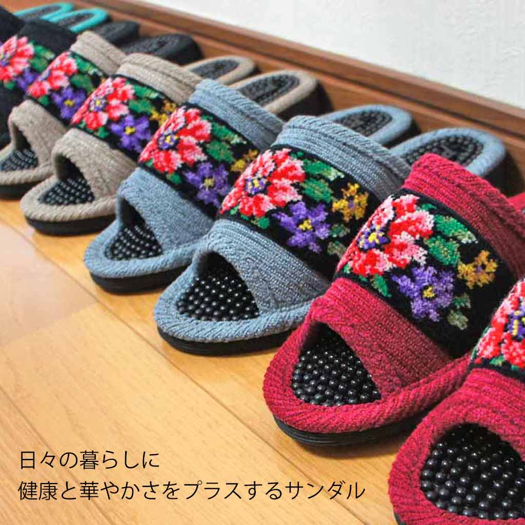 華やかさだけではなく、足裏を刺激する健康サンダル。