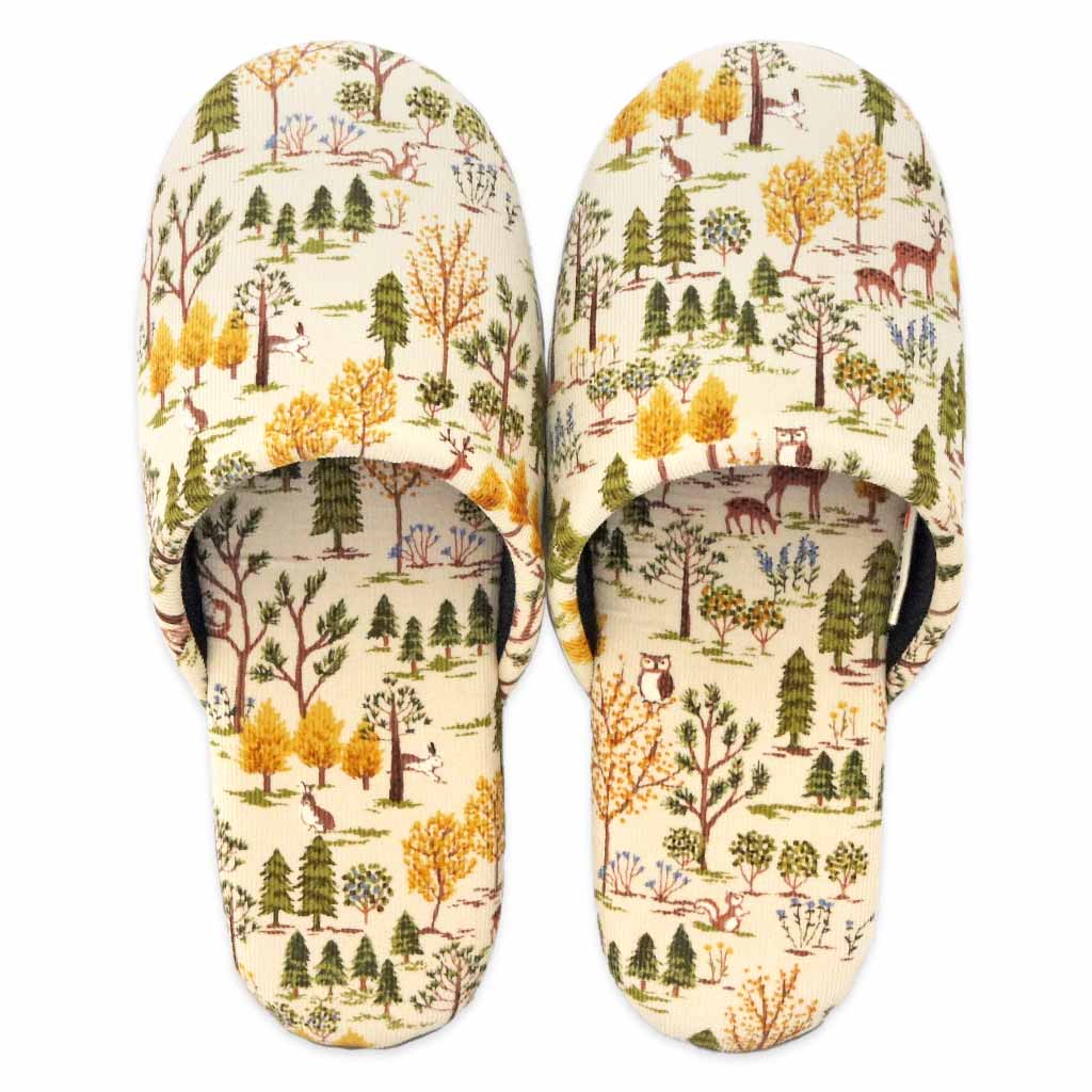 賑やかな森の雰囲気が感じられる温かみのある秋色のソフトスリッパです。