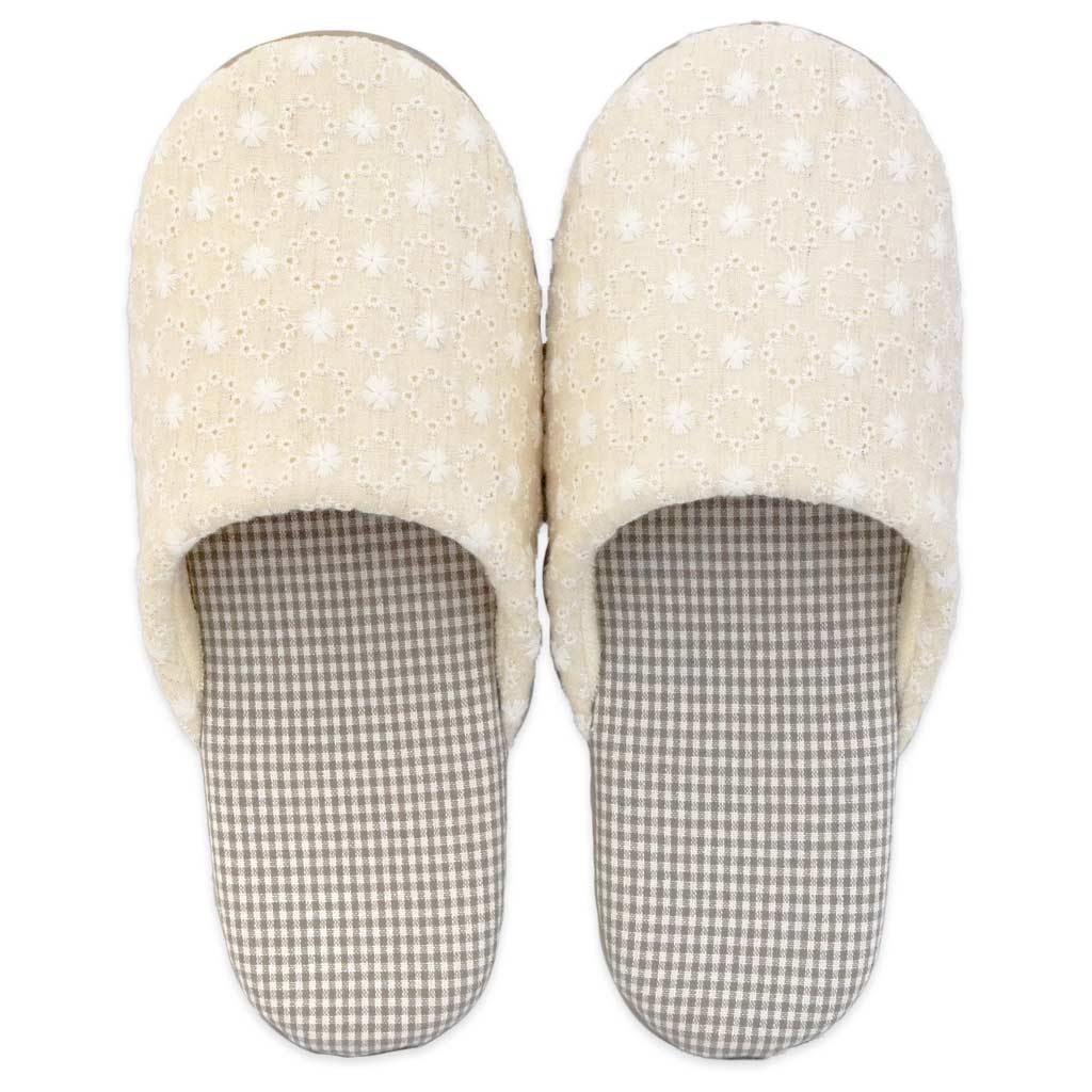 スリッパ リネンレースソフト中チェック Fサイズ 約24.5cmまで 静音 洗える 日本製